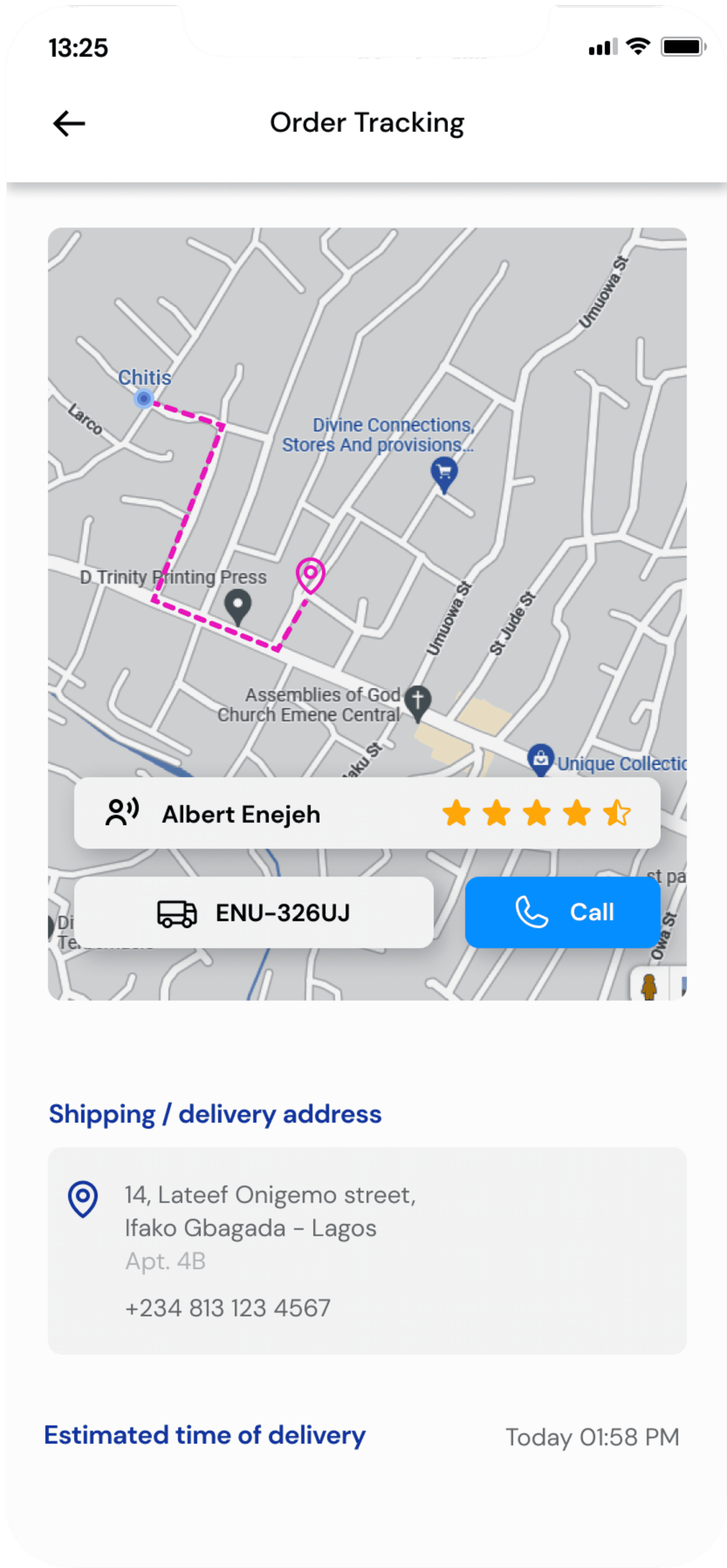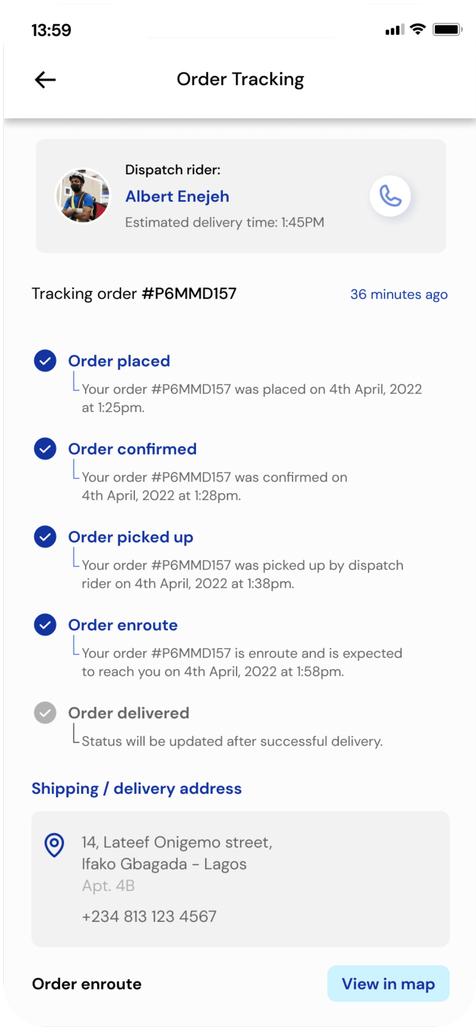 After usability test, users discovered the necessity for the provision of the dispatch rider’s contact information.