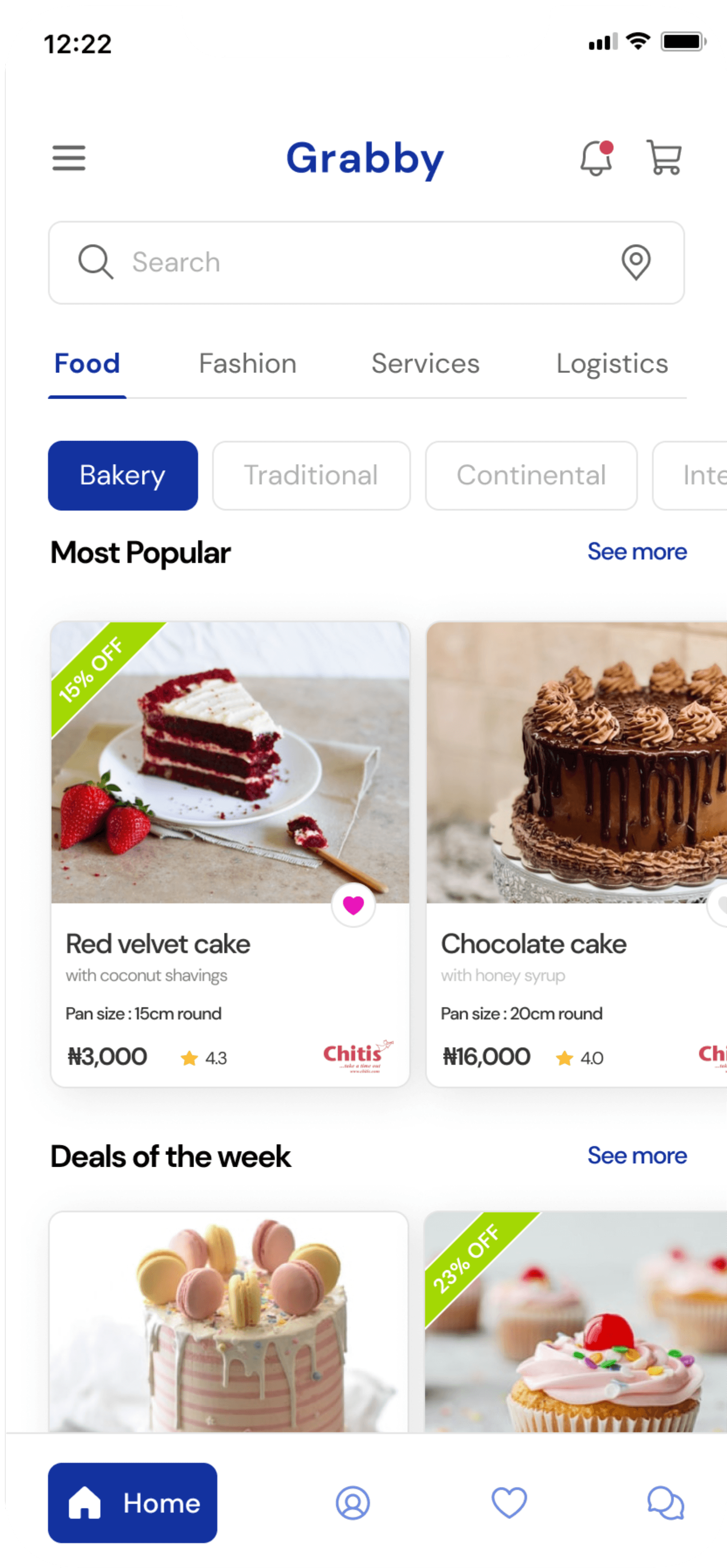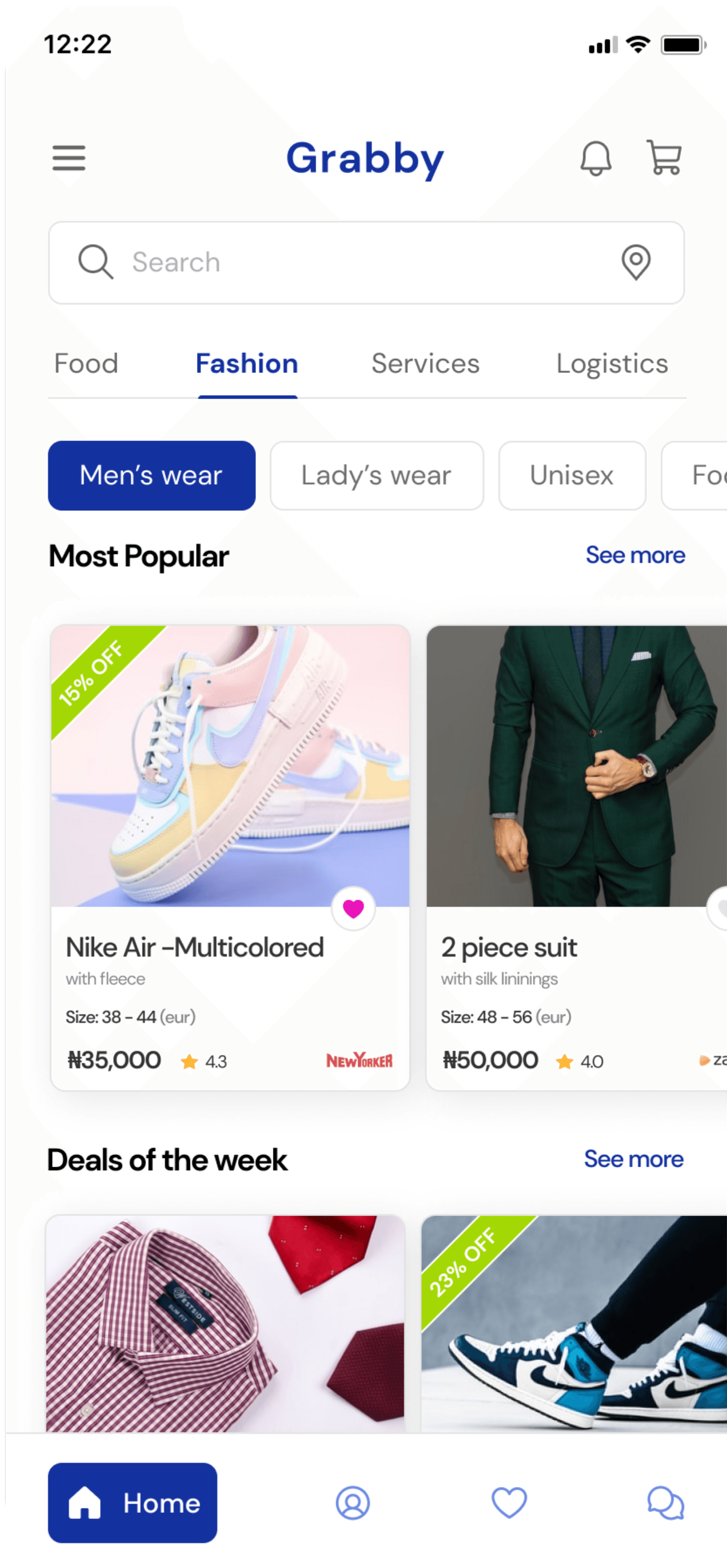 The filter option enables the user search for merchants / services either by location, merchant ratings, product prices etc., allowing for a personalized user experience on Grabby.